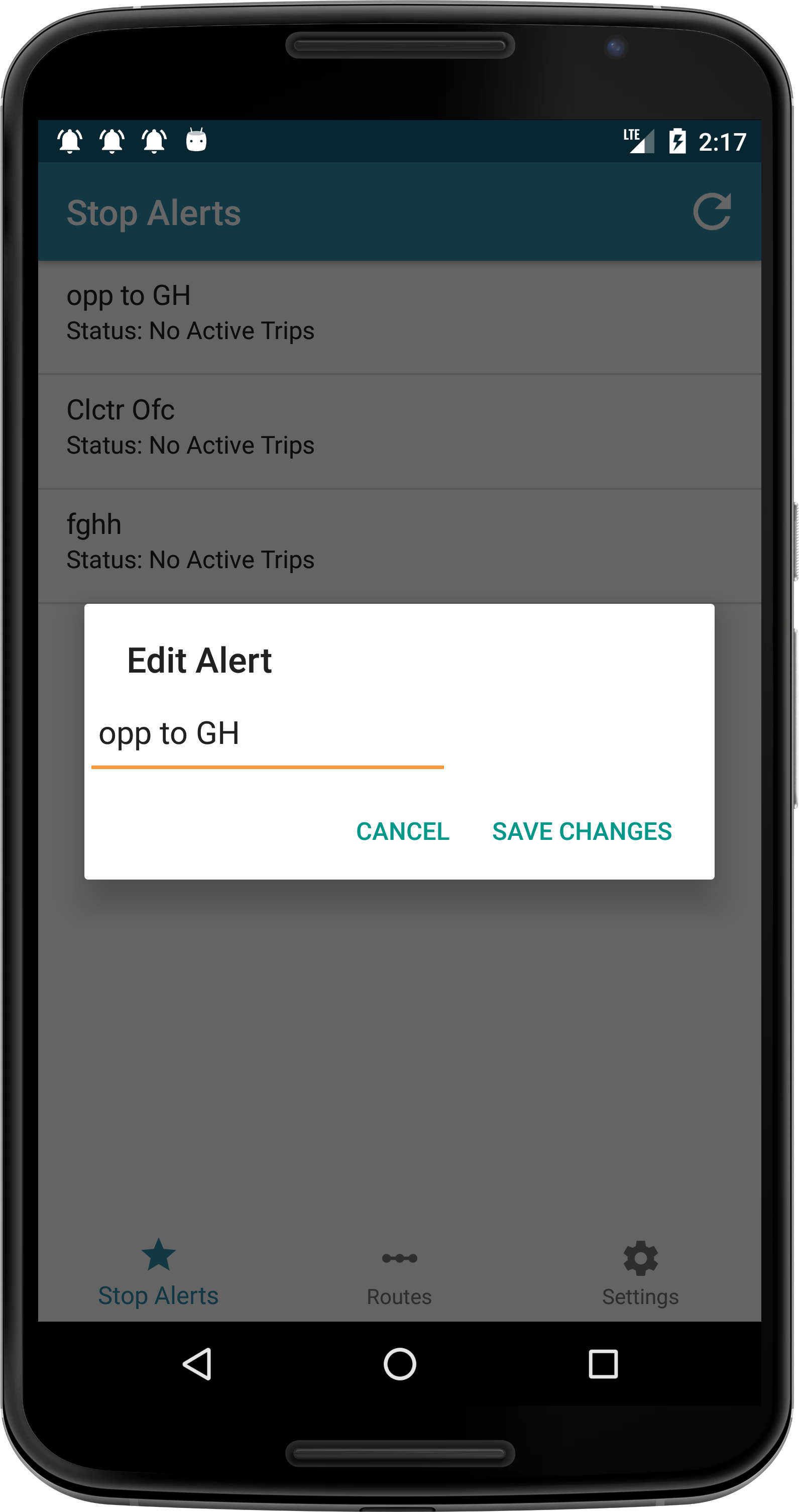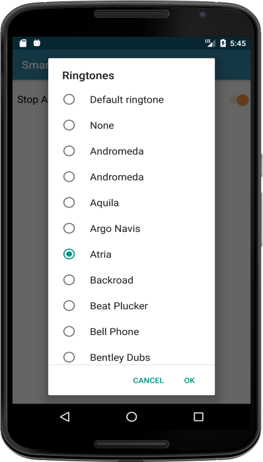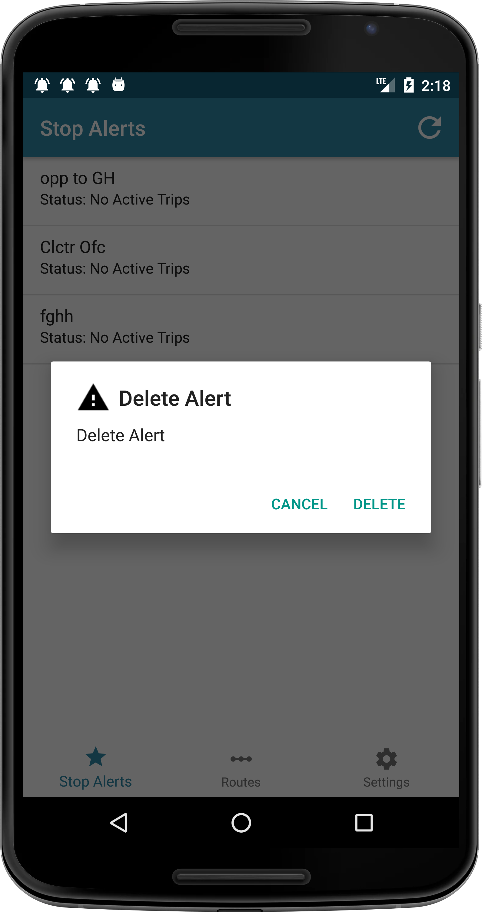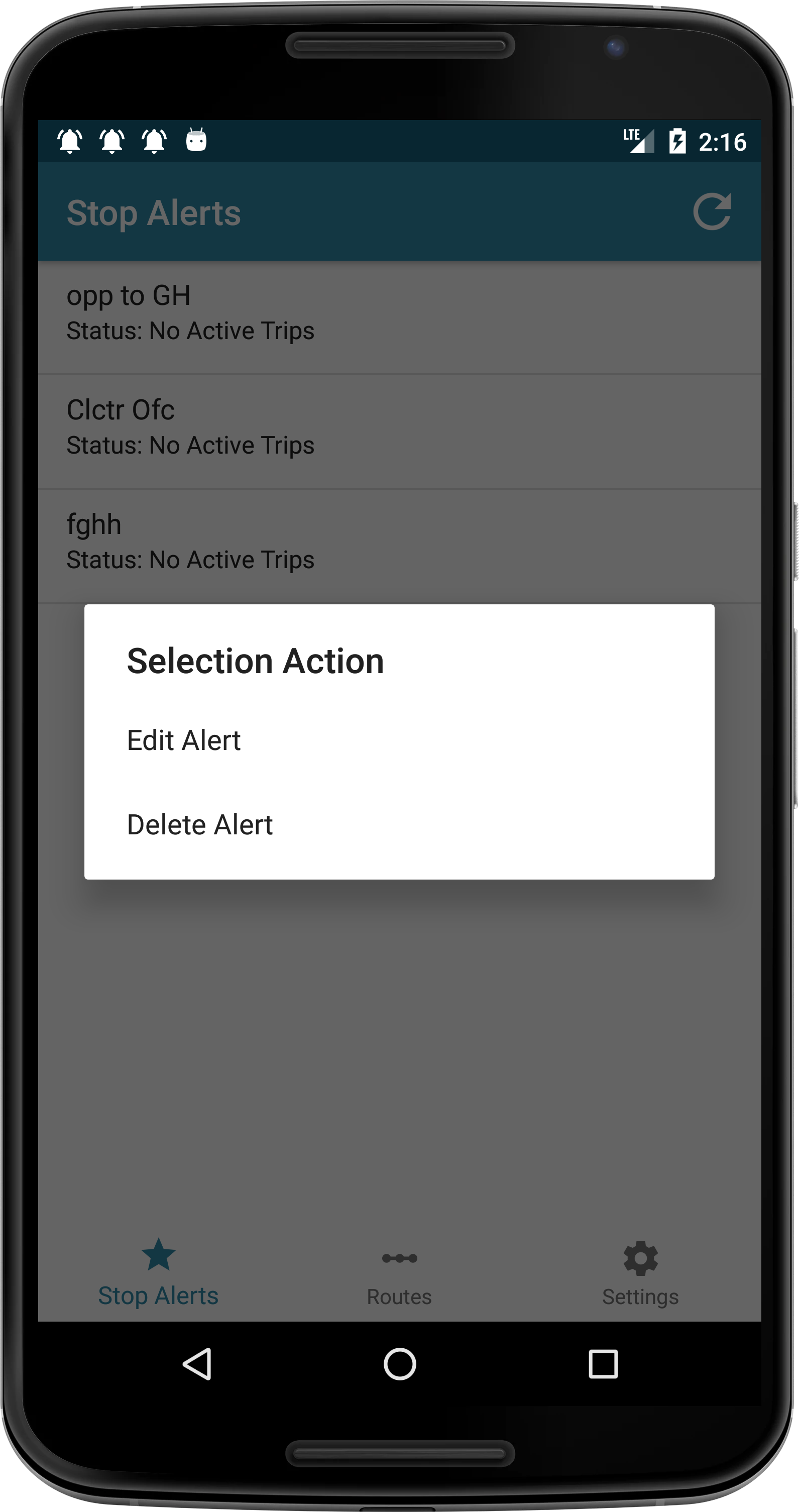 Enable or disable stop alert notification. change alert ringtone.View about