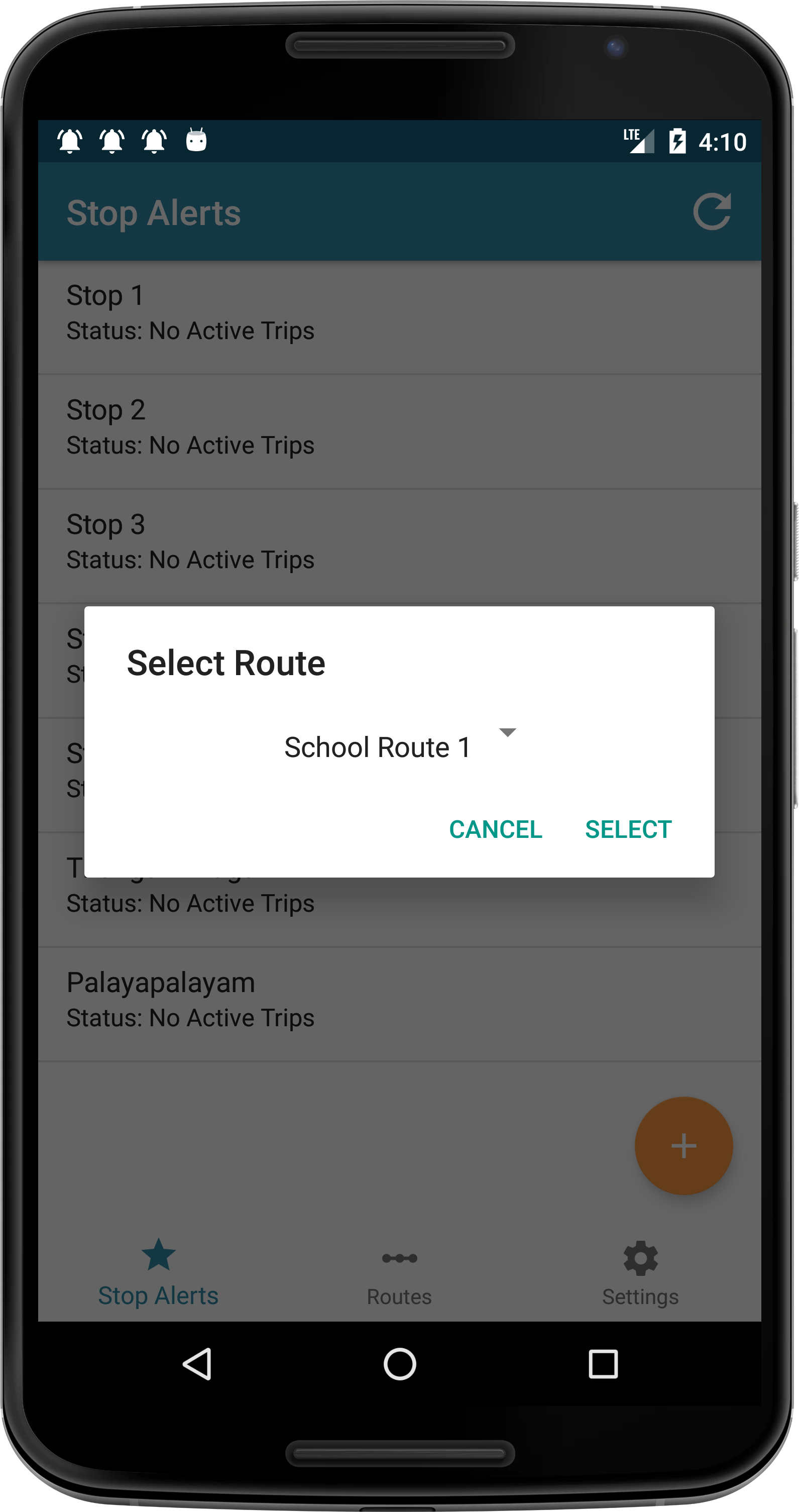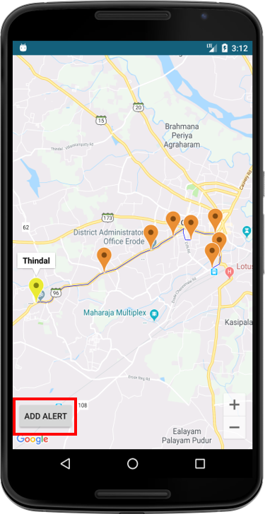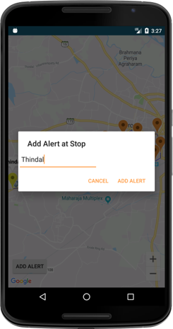 Select stop from map and add alert.