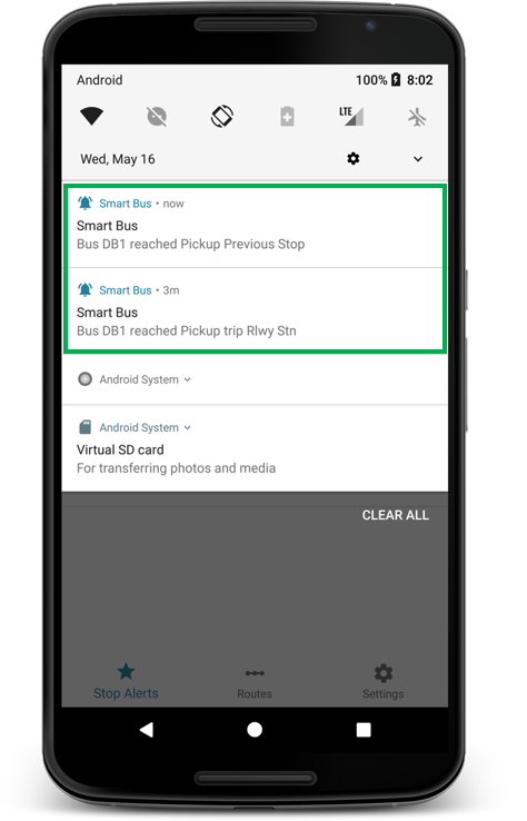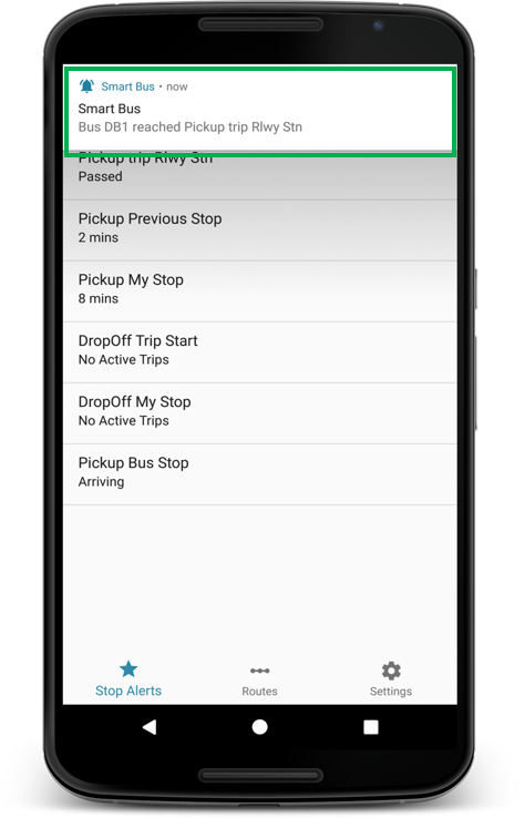 Get notifications when bus reaches your alert stops instantly